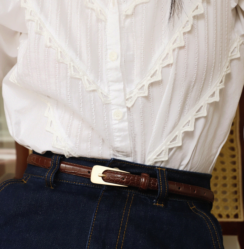 BluebluesSky双面牛皮复古扭纹腰带 百搭Vintage设计女士皮带