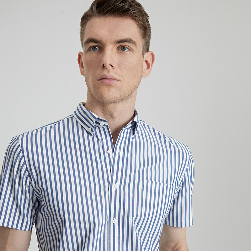 蓝白大条纹提花复古港风男衬衫外套纯棉时尚商务长袖衬衣宽松潮流