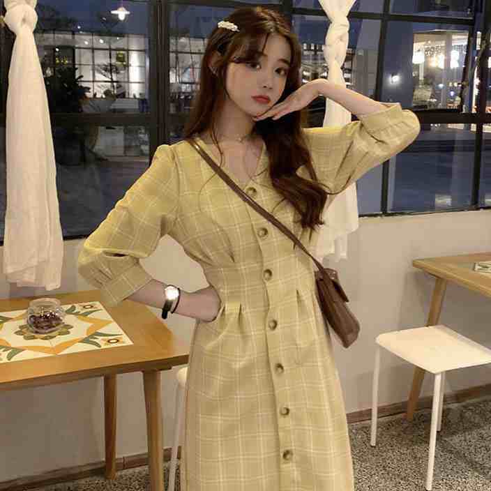 2021年夏季新款女装格子连衣裙法式设计感小众超仙气质女神范长裙热门设计联盟服务商