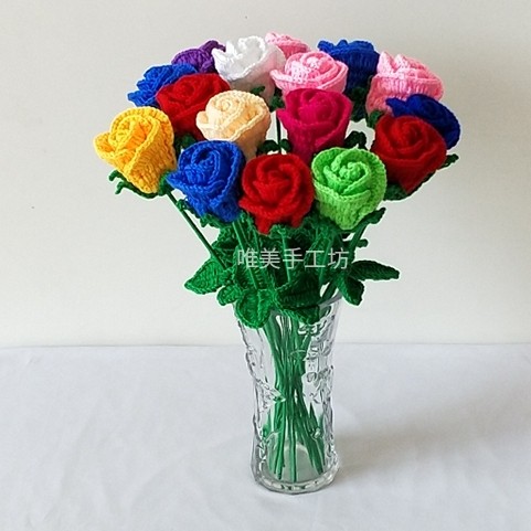成品仿真酒杯玫瑰花手工毛线编织假花母亲节七夕情人节客厅装饰热门设计联盟服务商