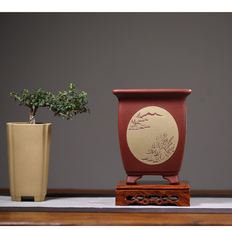 宜兴紫砂兰花君子兰盆手工双刀刻绘高档精品室内办公绿植盆栽中小热门设计联盟服务商