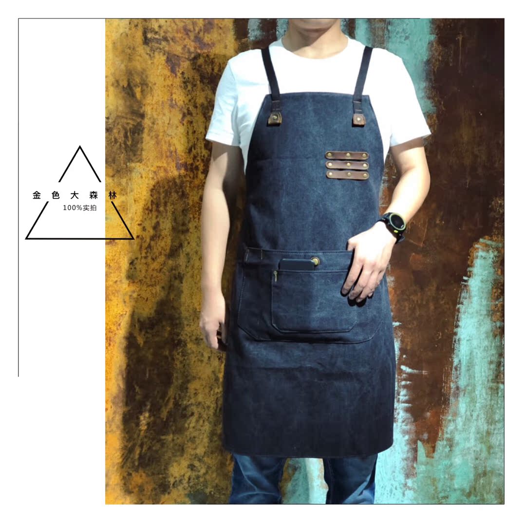 工匠围裙真皮水洗帆布复古工业匠人画室美发咖啡花艺工作围裙定制热门设计联盟服务商